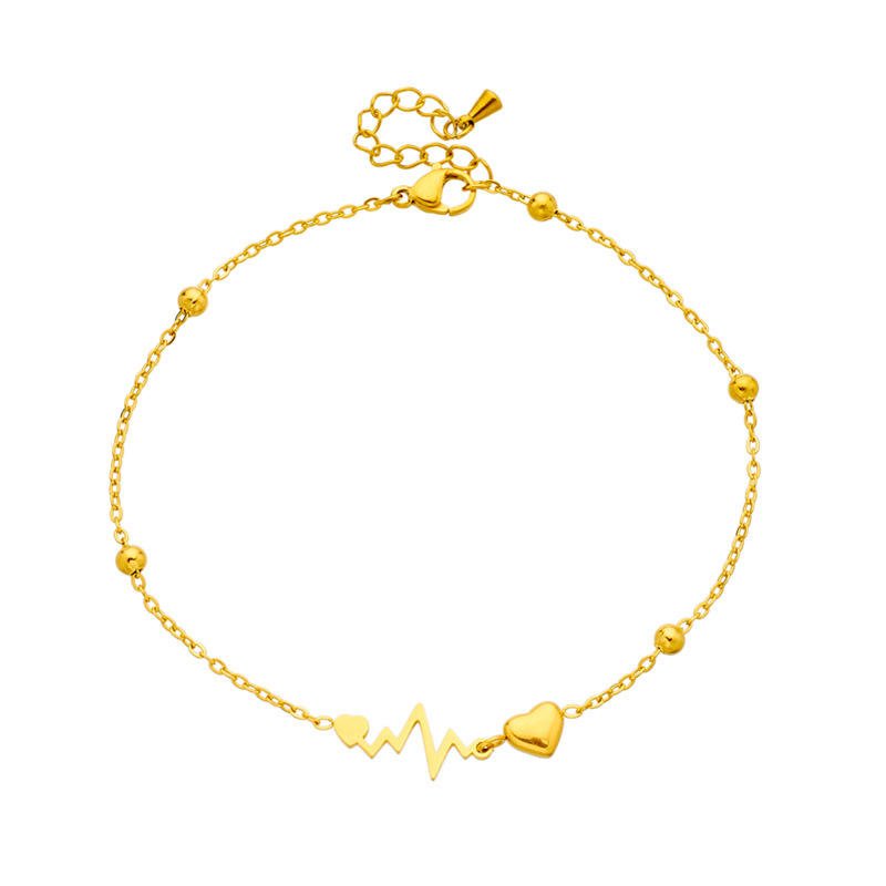 Crafted with precision, the Golden Heartbeat Anklet is made from high-grade materials that ensure durability without compromising on style. The delicate chain is adorned with a heartbeat-shaped design, coated with a radiant gold finish that gleams brilliantly in the light. Its lightweight construction ensures comfort for all-day wear, while its sturdy clasp provides a secure and reliable fit.